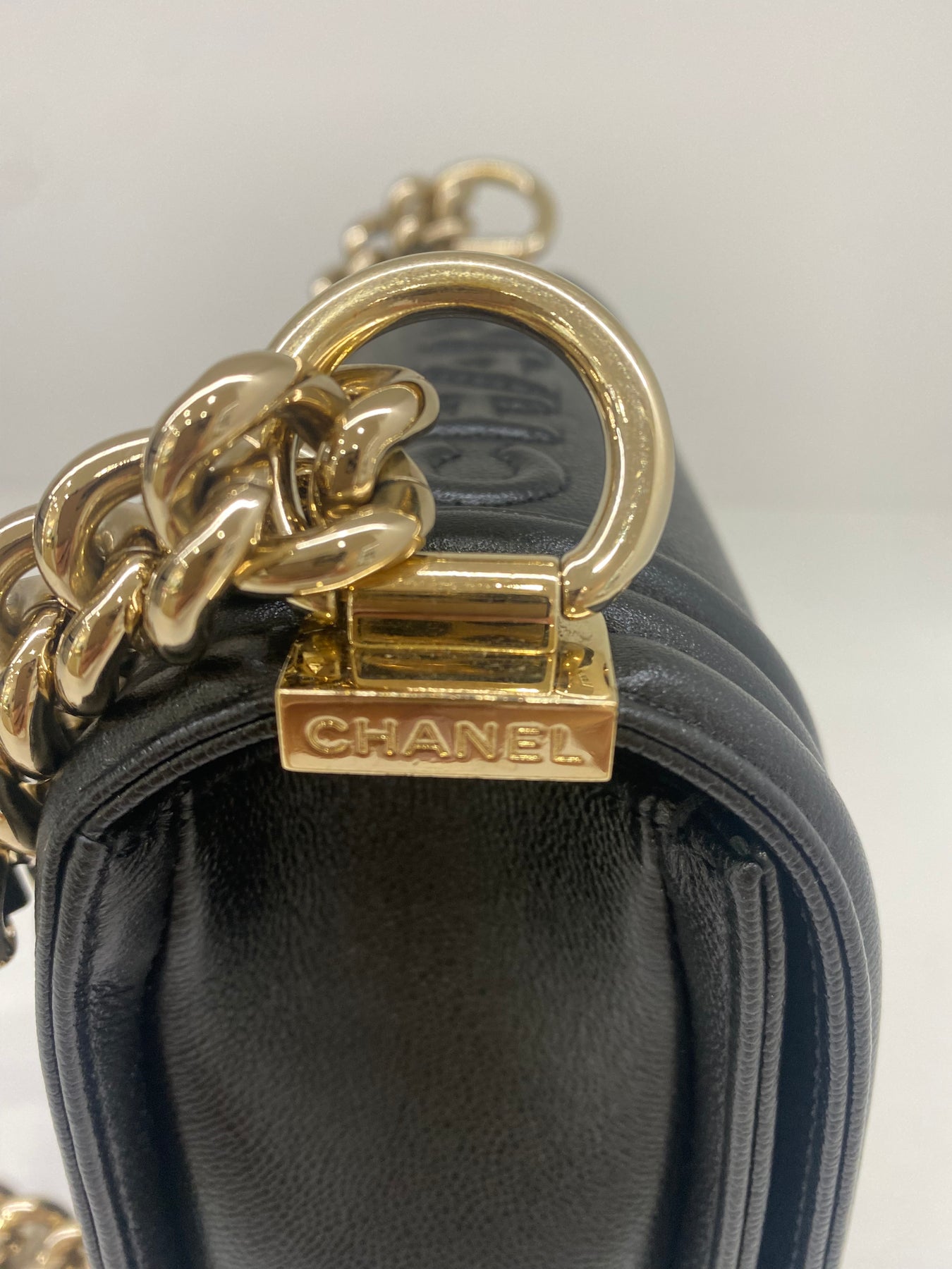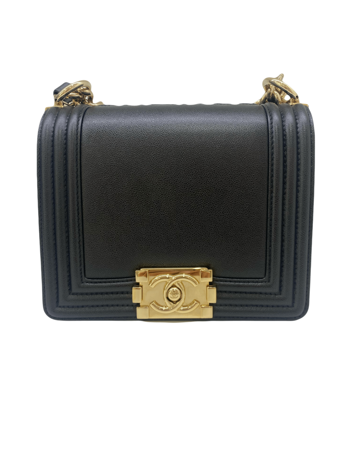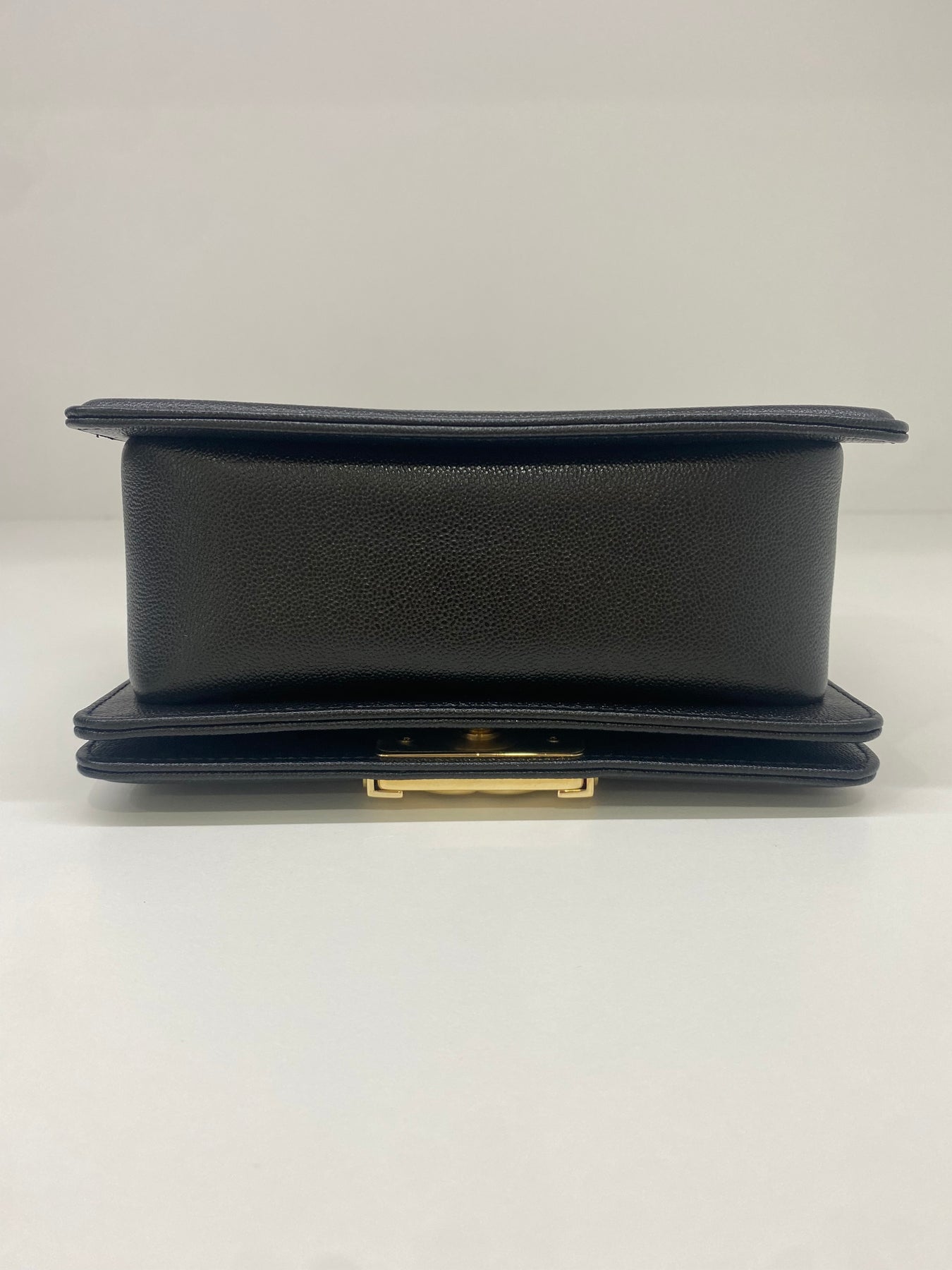 This elegant black leather handbag from Chanel exudes timeless charm and sophistication. The structured design features a distinctive gold-tone hardware closure with the iconic Chanel logo, adding a touch of luxury. Perfect for elevating both casual and formal outfits, this bag combines practicality with high fashion. Its sleek finish makes it a versatile accessory for any wardrobe.