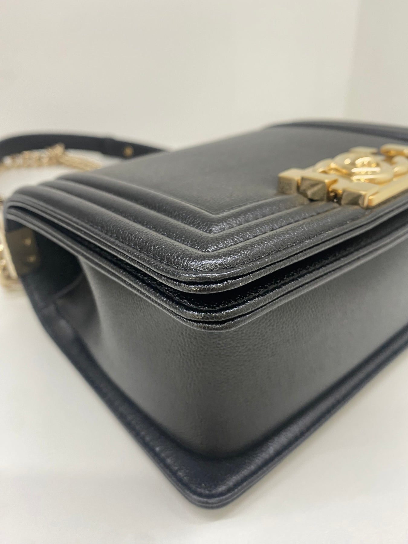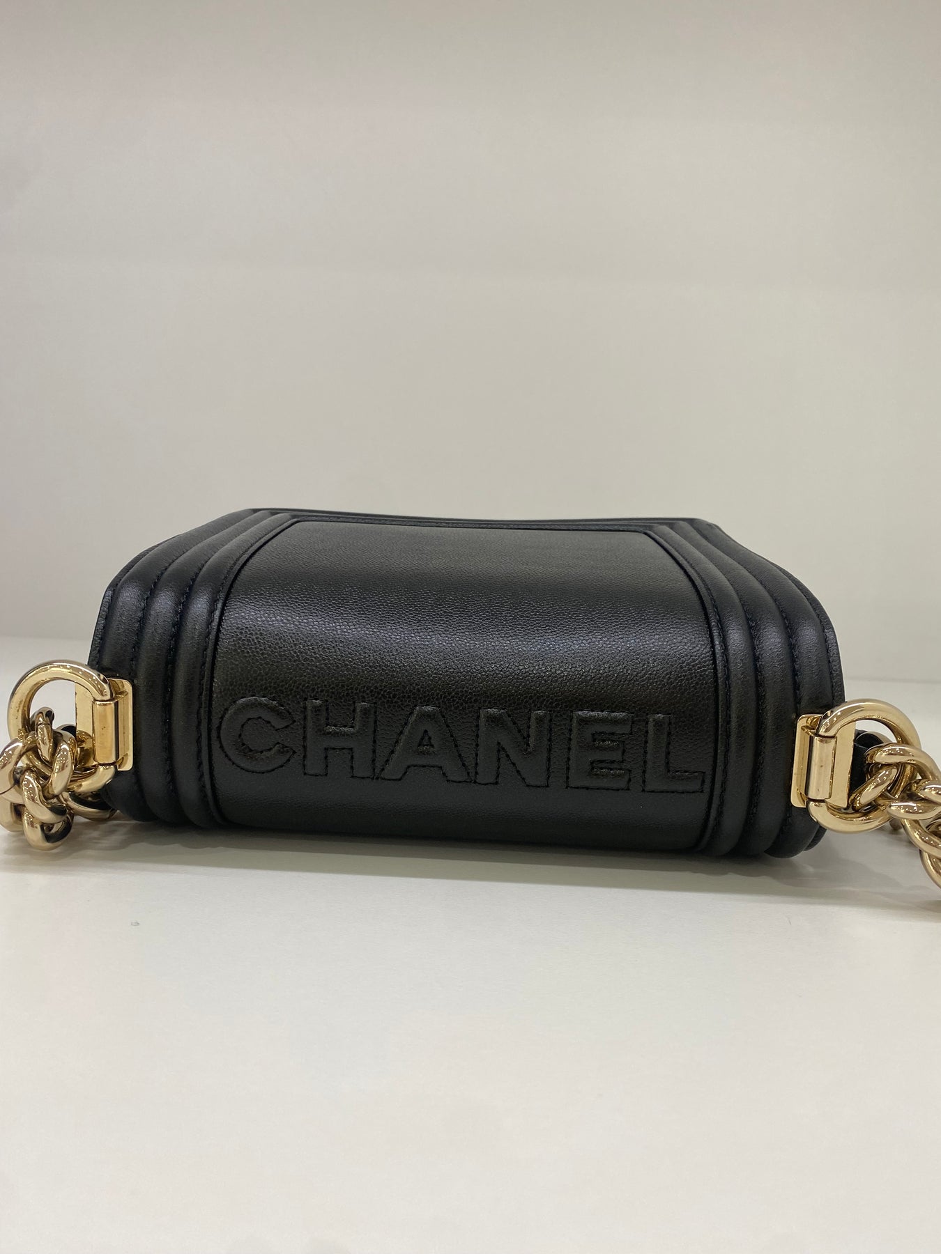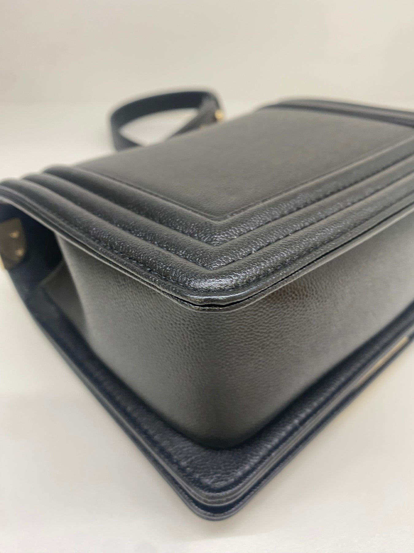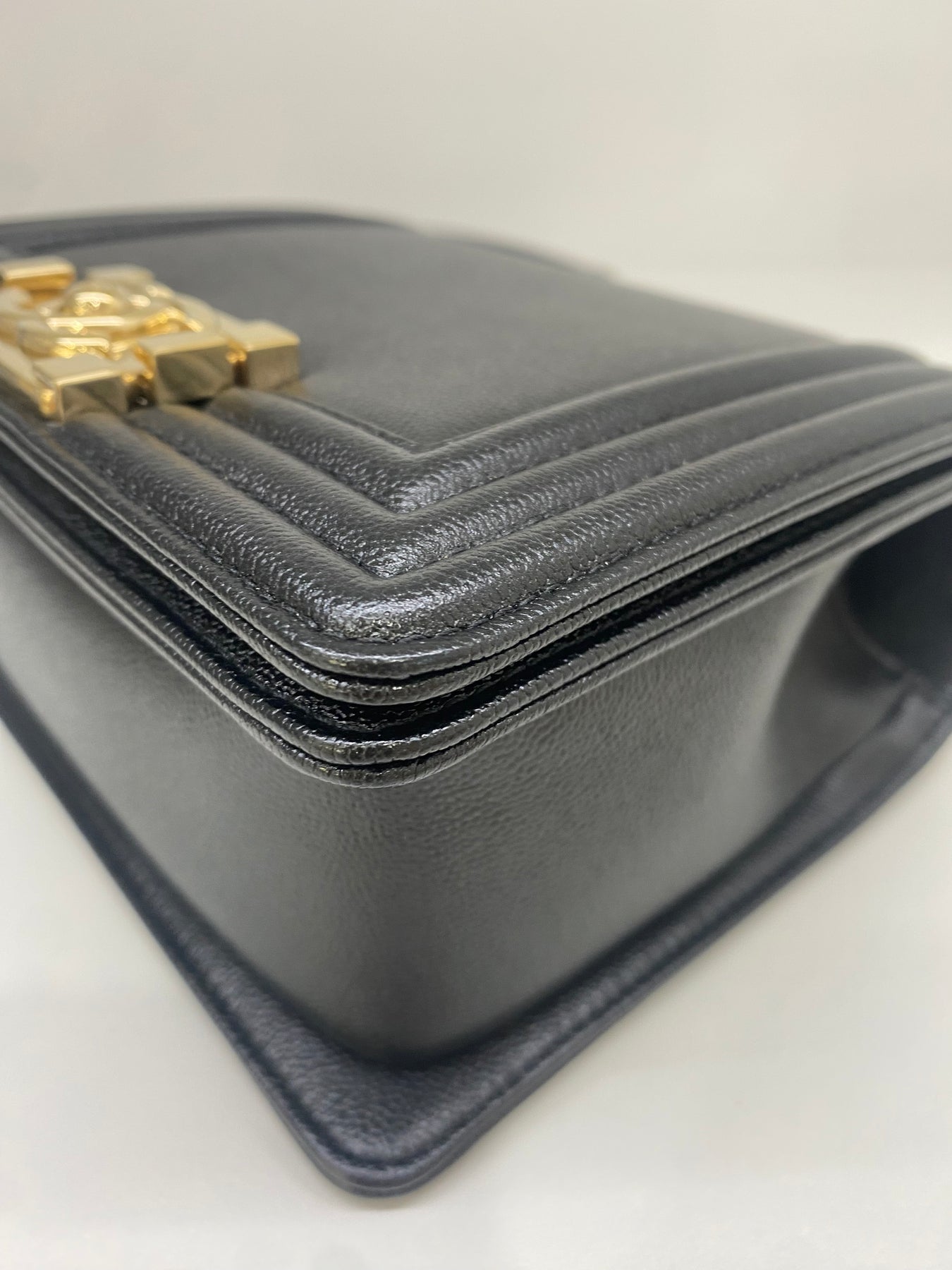 This elegant black leather handbag from Chanel exudes timeless charm and sophistication. The structured design features a distinctive gold-tone hardware closure with the iconic Chanel logo, adding a touch of luxury. Perfect for elevating both casual and formal outfits, this bag combines practicality with high fashion. Its sleek finish makes it a versatile accessory for any wardrobe.